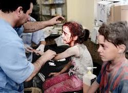 بقربي سمعت أحدهم يسأل شخصاً آخر من المعتقلين: من ربكم؟ ولم يتوقفوا عن ضربه حتى قال لهم: بشار الأسد، واستمروا في ضربنا، وأخذ أحدهم يصرخ بنا قائلاً: الله ربكم، وبشار ربنا وسنرى من سينتصر في النهاية". يكمل محمد قصته ويقول: "طلبنا منهم الماء، فأتوا بعبوات المياه وأخذوا يرشوننا بها على رؤوسنا ولم يسمحوا لنا بالشرب، وبعد ست ساعات على هذه الحال أوقفونا، وبدؤوا بأخذ أسمائنا. بقينا واقفين لنحو الساعتين، طلبت خلالهما دخول الحمام أكثر من عشر مرات، وفي النهاية قالوا لي: (فلتبل في ثيابك)، وبعدها بدقائق أخذوا بعضاً منا للحمام، وهناك فكت العصبة عن عيني، فطلبت من أحد العناصر أن يربطها لي، فقام بضربي على قدمي من الخلف بخشبة عريضة كالتي تستعمل في أعمال البناء.. عند الضربة الثالثة وقعت على الأرض، فقام عنصر آخر بضربي على بطني برجله قبل أن يعيد ربط العصبة على عيني، وقال لنا أحدهم: (تريدون أن تسقطوا النظام؟ إن الله لا يستطيع ذلك، ألا تعلموا أن بشار الأسد هو من نصب الله إلها)؟ وهنا، ساقونا إلى غرفة في الملعب تحت المدرجات معدة للرياضيين ولا تتسع لأكثر من 100 شخص ولكنهم وضعوا نحو الألف منا فيها. جلسنا على الأرض وأجلسونا بعضنا خلف بعض بشكل خطوط ليفتحوا ممرات للدخول، بعضنا تبول في ثيابه بعدما رفض الأمن أخذه إلى الحمام. ولكن أبشع ما حدث معنا هو حين قامت مجموعة منهم بخلع سراويلهم ليبولوا علينا وهم يشتموننا ويسبوننا، وفجأة لقم أحدهم بندقيته ووجهها صوبنا، لم أعد قادراً على رؤية شيء سوى فوهة البندقية، متخيلاً شكل الرصاصة التي ستخرج منها وتصيبني، فكرت في والدي وإن كان ما زال حياً، عاد إلي صوت والدتي وهي تدعو لنا: (الله يحميكم ويرجعكم سالمين)، وبدأت أردد: يا الله يا الله". بقي الوضع على هذا المنوال حتى الثامنة من صباح اليوم الثاني، يقول محمد: "حين دخل ضابط في الجيش وبدأ بتلاوة أسماء أطفال تحت السادسة عشرة من العمر ومسنين فوق الخمسين من العمر، وقاموا بالإفراج عنهم".